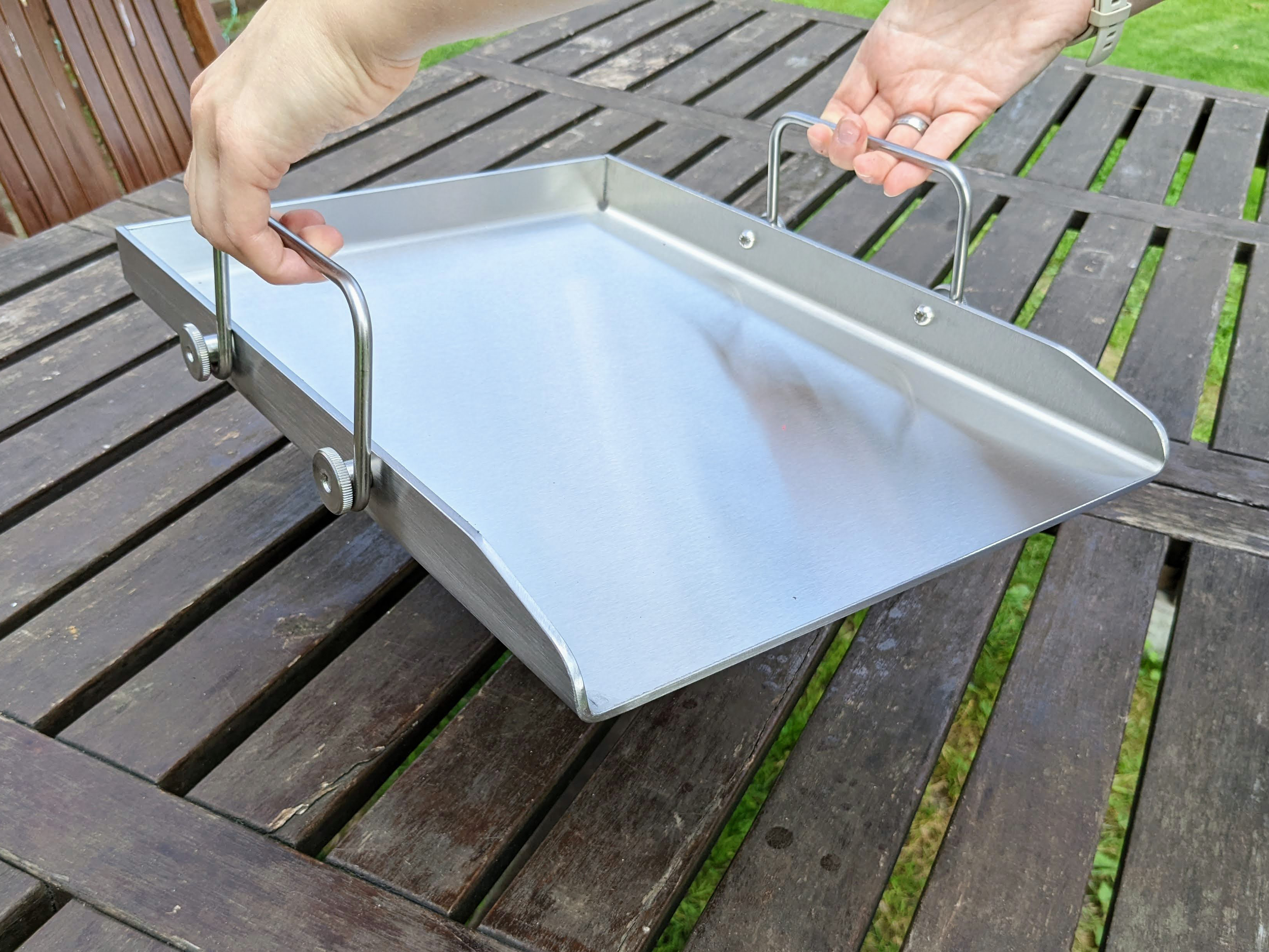 Durch den abnehmbaren Griff wird der Griff nicht heiß und die Plancha kann im heißen Zustand Gefahrlos vom Grill entfernt werden.